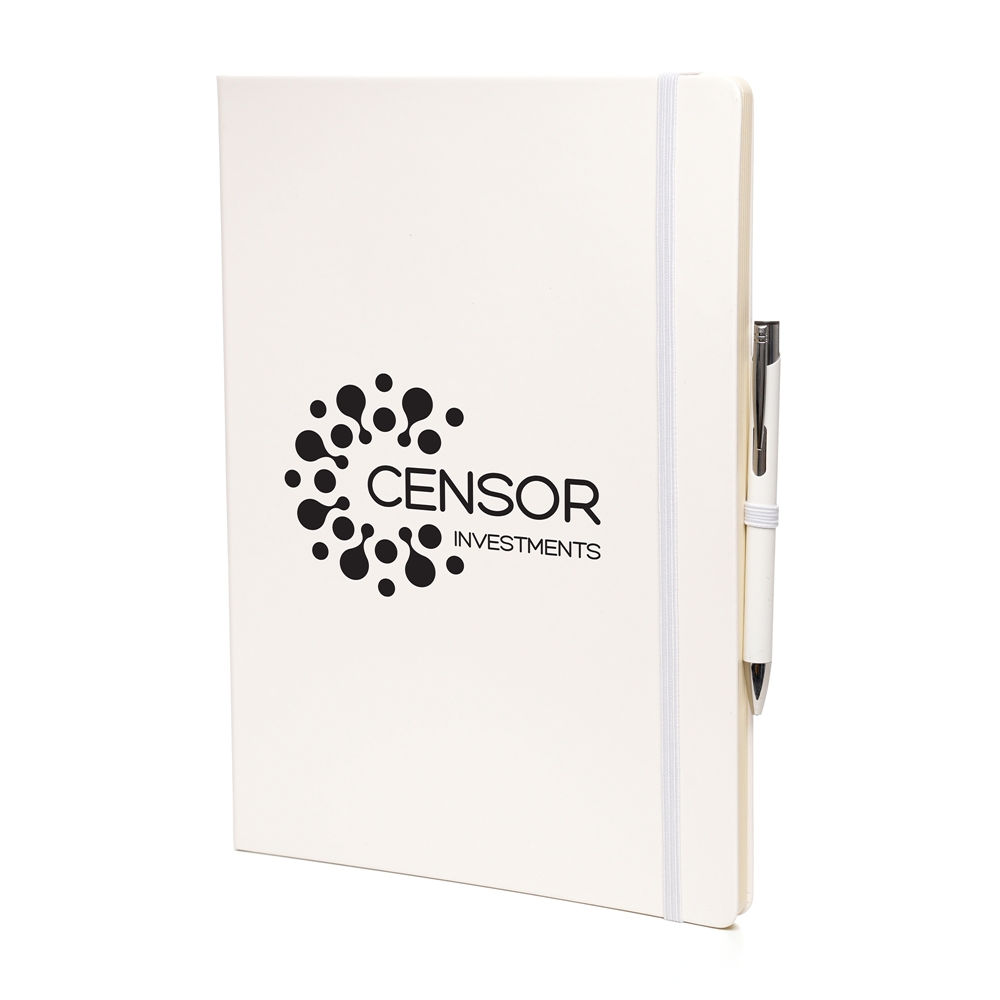 Price includes a one colour print to the note book and engraving to one position on the pen. Individual name available at additional cost. Set up, carriage and VAT are additional.