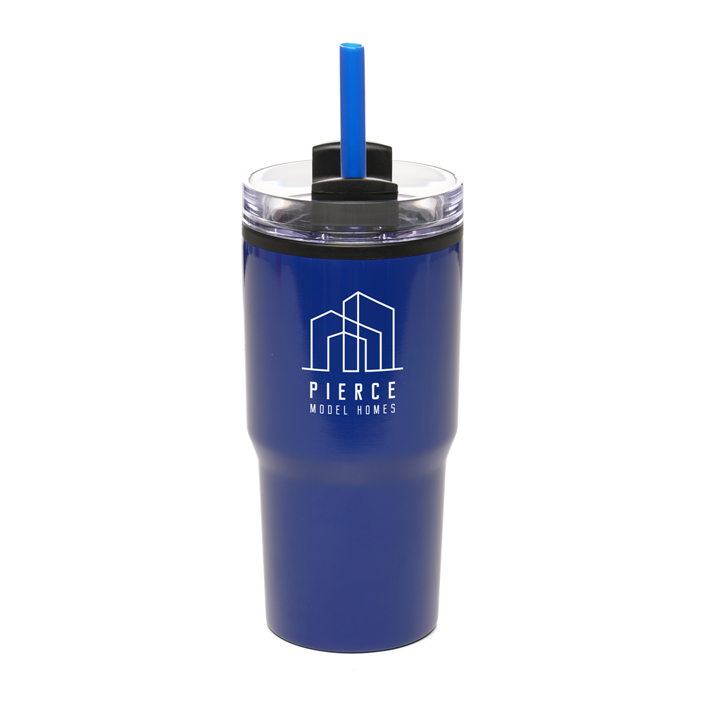 Promote your brand with the practical 600ml double-walled tumbler, finished with a simple yet eye-catching metal gloss look. Made with a stainless steel outer and PP plastic inner. Lightweight and compact it offers a large branding area to show off your branding prominently. A great choice for trade shows, events and everyday giveaways, this tumbler is also ideal for posting directly to customers to keep your brand visible on the go. Complete with a clear AS lid, PP slider, secure silicone seal and reusable PP straw for added convenience. Affordable, practical, and designed to carry your message further – Order today! BPA & PVC free.