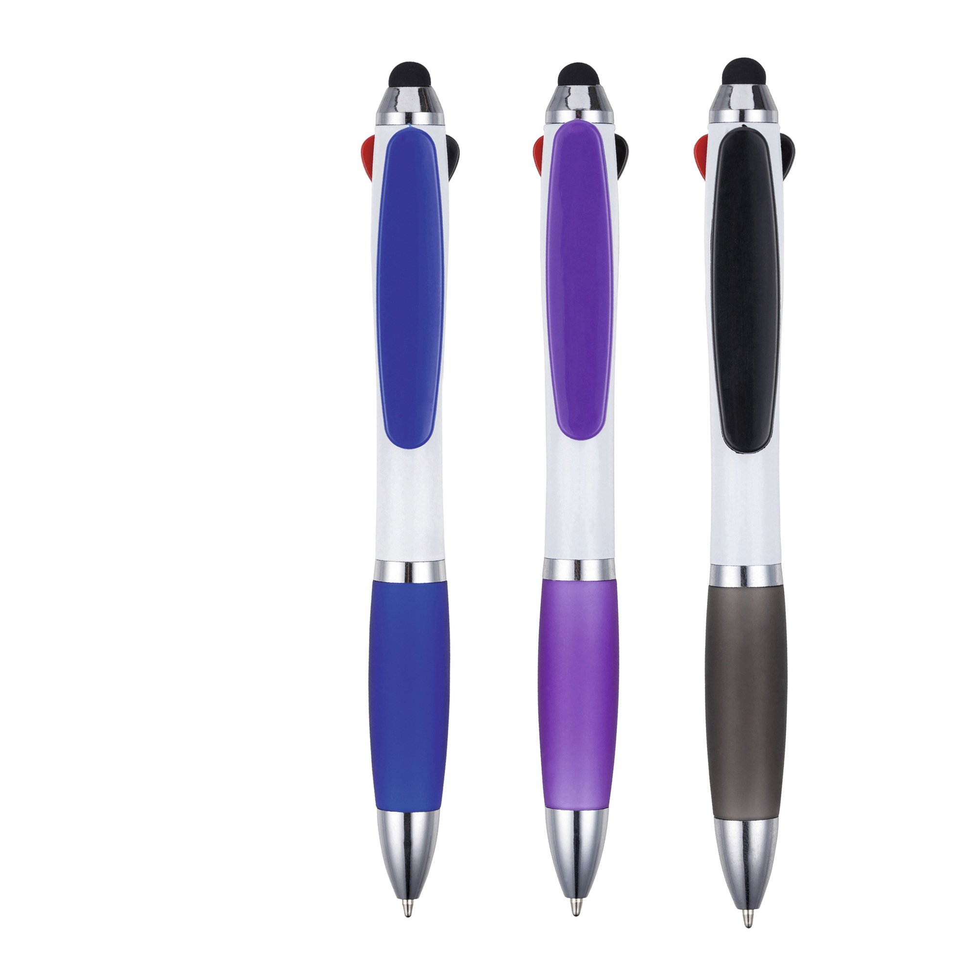A modern multi ink version of an industry favourite! Comes complete with a stylus, comfort grip and 3 ink re-fills - black, blue and red ink.